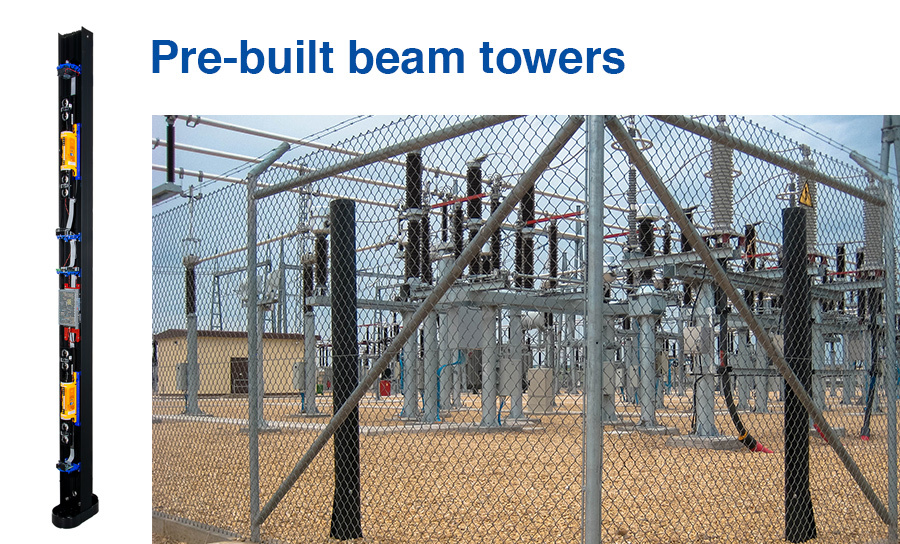 The towers are assembled by our trained technicians and supplied completed so that all you have to do is to install the towers in their final location, connect the power (if required) along with the alarm cables, align the beams and the installation is complete.
