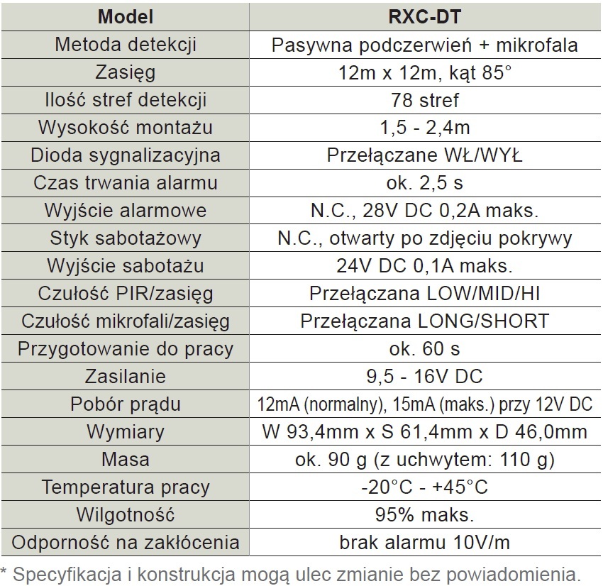 Połączenie technologii PIR i mikrofal rozszerza elastyczność i parametry pracy podstawowej serii RX-Core. RXC-DT to platforma RXC-ST rozbudowana o zaawansowaną technologię mikrofalową, sprawdzającą się w bardziej wymagających środowiskach.
