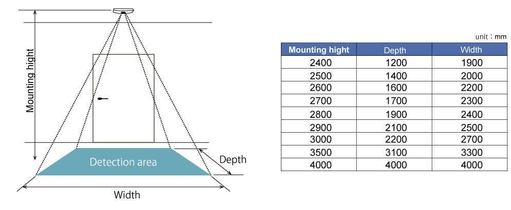 Detection area can be adjusted after installation of detection unit. - Sensitivity adjustability